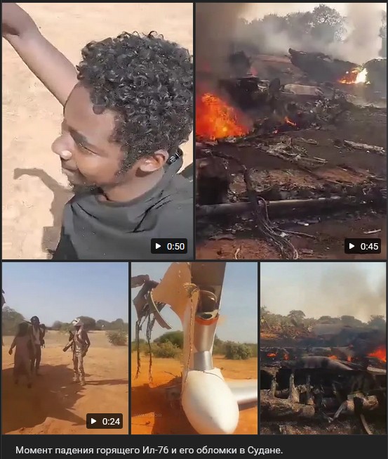 Sudánska armáda však popiera, že by zostrelila svoje lietadlo, a tvrdí, že havarovalo v dôsledku nárazov úlomkov z „náhlej technickej poruchy pravého krídla“ počas nakladania nákladu. Moment pádu horiaceho Il-76 a jeho trosky v Sudáne.