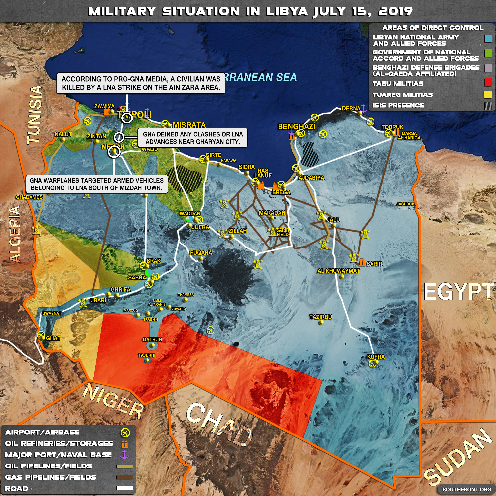 VOJENSKÁ SITUACE V LIBYI 15. července 2019 (MAP UPDATE)