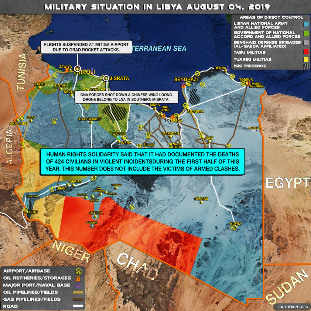 - LNA vojenská letadla zasáhla pozice GNA poblíž letiště Tripolis. https://southfront.org/in-maps-military ... y-20-2019/