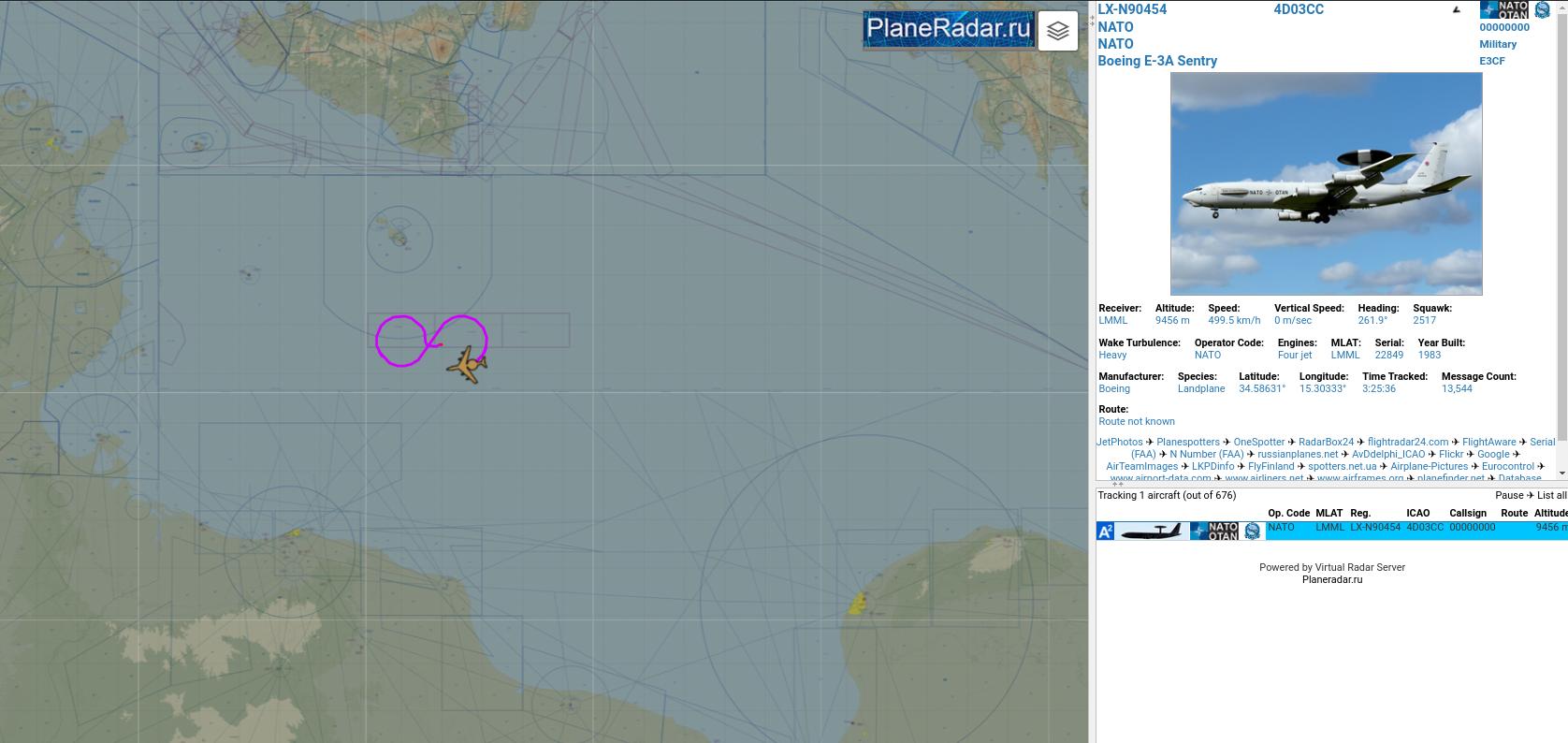 NATO AWACS E-3A LX-N90454 přiletěl právě k libyjskému pobřeží