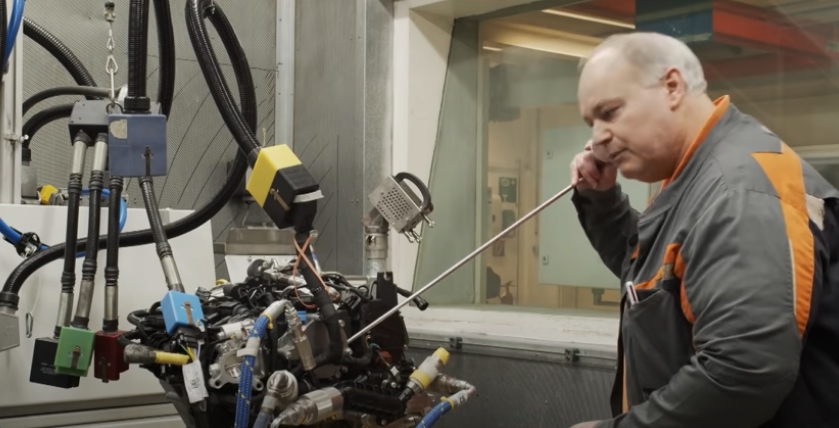 Nejmodernější továrna Fordu, plně automatizovaný proces výroby, ale při testování motoru nebyla stará dobrá technika zapomenuta...