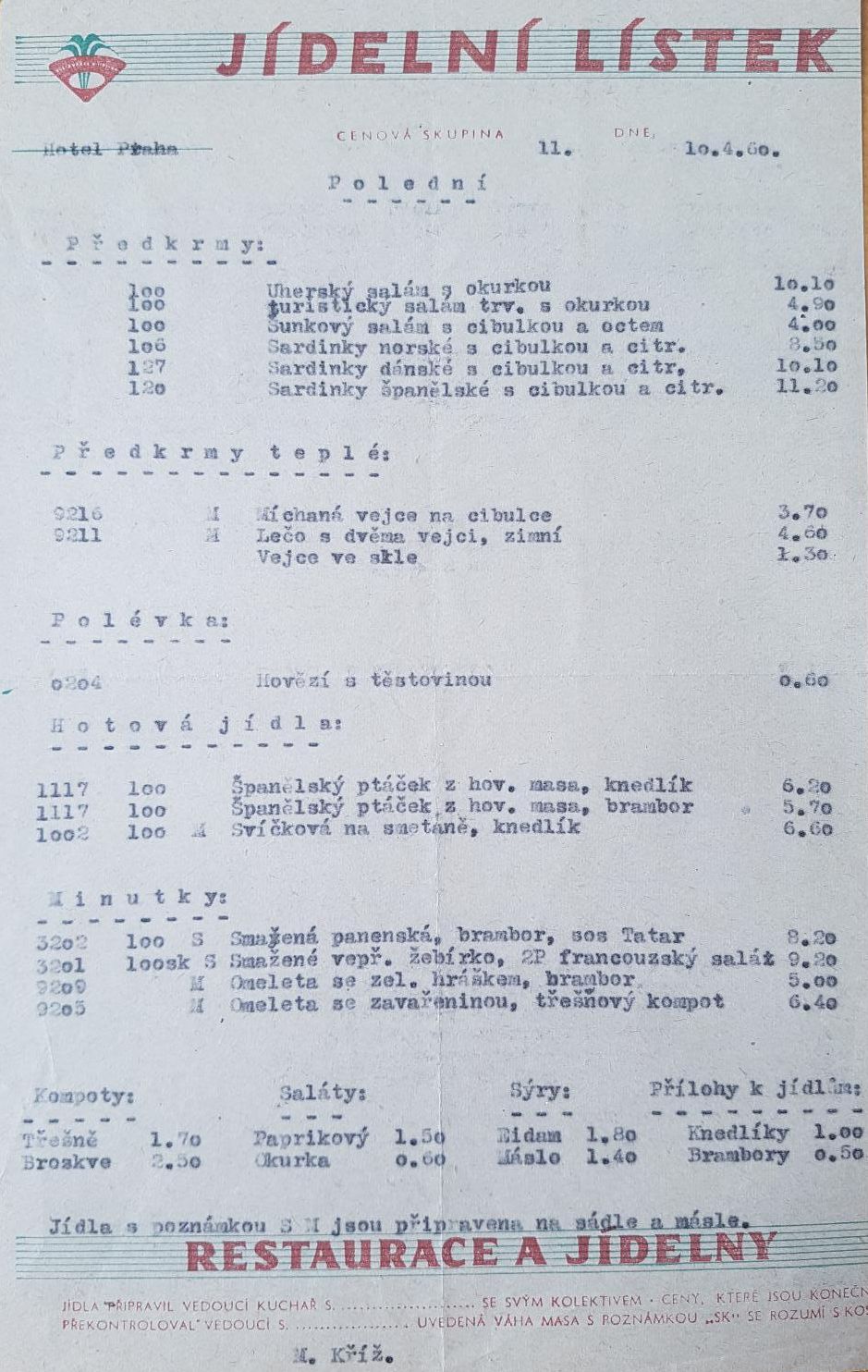 Dlužno dodat,že v roce 1986 jsem měl nástupní plat 1 500Kč.(výplatní pásku mám schovanou)To potom ty ceny v restauraci vypadají poněkud jinak.