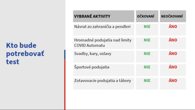 Ministerstvo zdravotníctva SR informuje o tom, kto bude potrebovať test a na akých miestach. Zároveň uviedli, kto sa bude musieť testovať v prípade zhoršenej epidemiologickej situácii pre delta variant.