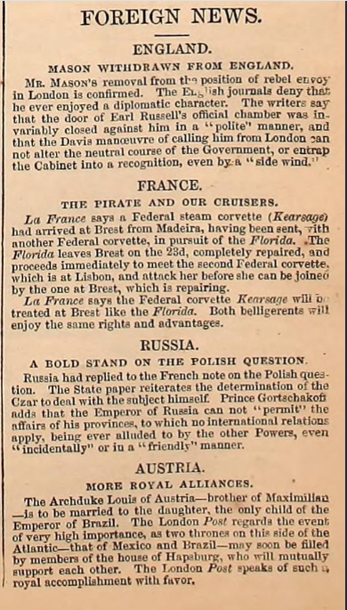 17. října 1863 „Harper’s Weekly. Najdite si stranu 656 a ďalej. K prečítaniu článkov som sa ešte nedostal. Obrázky anglických lodí sú s použitím označenia Anglo-rebel...čo mi nepripadá prívetivo voči angličanom.