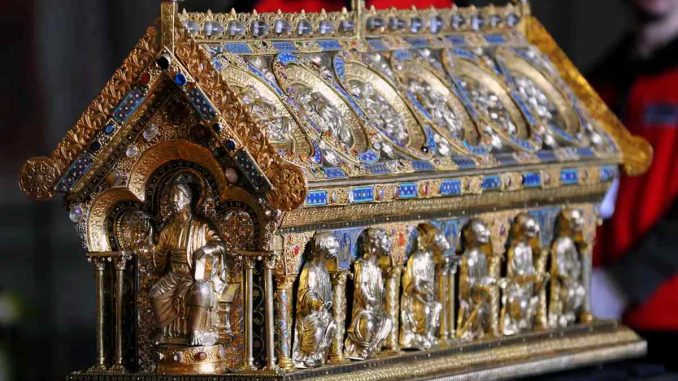 Pak je další krásná záhada, a to, čím to je, že se zachoval, když je dokázáno, že tam každých sto let byly minimálně dvě války, na území dnešní Belgie. Klášter byl mnohokrát vypleněn, a relikviář vždycky zůstal zachován. Já vždycky říkám, že tento relikviář měl velké štěstí, je ochráněn nějakou mocí, a vždycky, když už to vypadalo bledě, nastala nějaká zázračná situace a relikviář byl zachráněn. A o jeho historii v Čechách si budeme povídat potom dál.