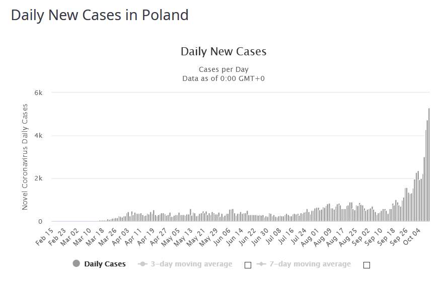 Teprve ve čtvrtek představil ředitel Ústavu zdravotnických informací a statistiky (ÚZIS) Ladislav Dušek modely prognózy vývoje šíření koronaviru v Česku a už v pátek čísla nakažených přesáhla nejhorší možnost. Oficiální prognóza vývoje epidemie předpovídala, že v první polovině října bude průměrně denně zaznamenáno 4809 nových případů, a to v rámci nejhoršího možného předpokladu, který počítal s reprodukčním číslem 1,4. V pátek bylo ovšem zaznamenáno 8 618 případů.