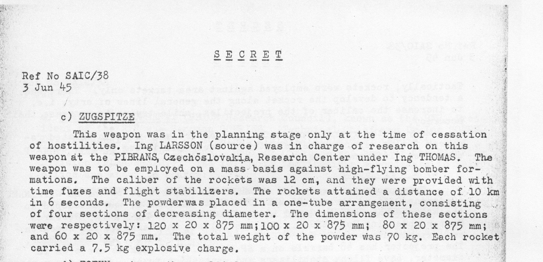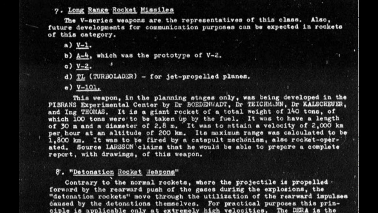 Raketa na uvodnom obrazku videa, zmienovana v 25:20 ako "Zugspitze" je zjavne protilietadlova raketa "Rheintochter", firmy Rheinmetall-Borsig.