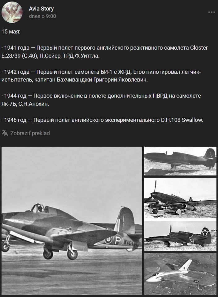 - 1946 (76r.) - prvý let britského experimentálneho lietadla D.H.108 Swallow =Foto 5 Zdroj https://vk.com/wall-141829_111501 z 15.05.2022