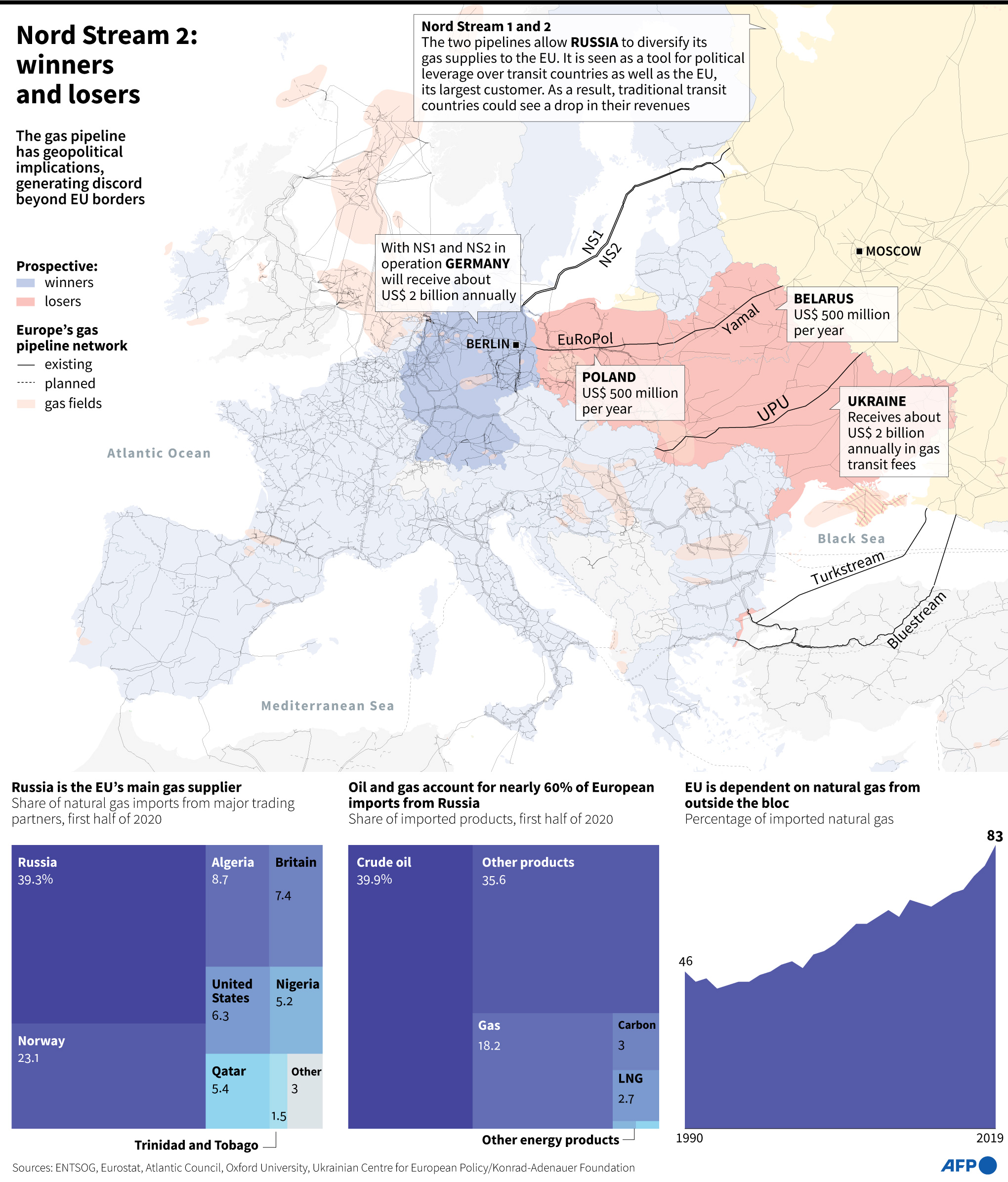 Nord Stream 2 je plynovod vedoucíz Ruska do Německa s celkovou roční kapacitou 55 miliard metrů krychlových. Proti projektu aktivně vystupovala Ukrajina, která se bojí ztráty příjmů z tranzitu, a také USA, které mají zájem o protlačení svého LNG do Evropy. Jisté výhrady má ale i řada evropských zemí, včetně Polska.