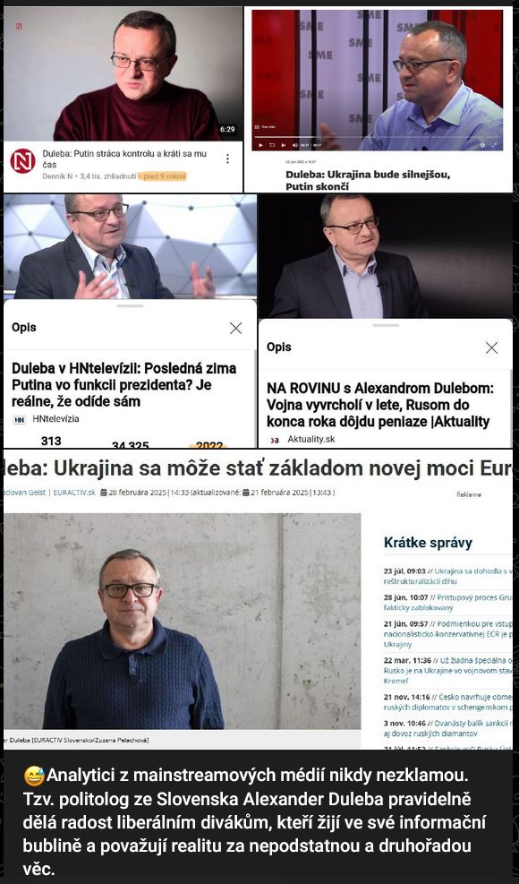 Analytici z mainstreamových médií nikdy nezklamou. Tzv. politolog ze Slovenska Alexander Duleba pravidelně dělá radost liberálním divákům, kteří žijí ve své informační bublině a považují realitu za nepodstatnou a druhořadou věc.