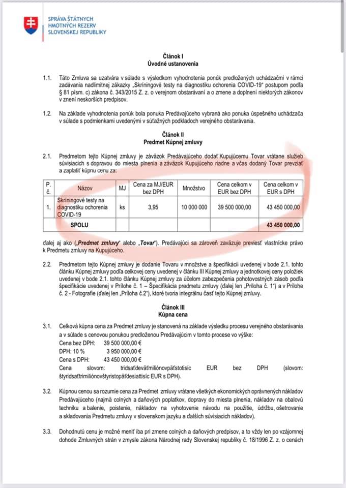 Čast zmluvy medzi Správou štátnych hmotných rezerv a neznámou firmou z Trnavy.