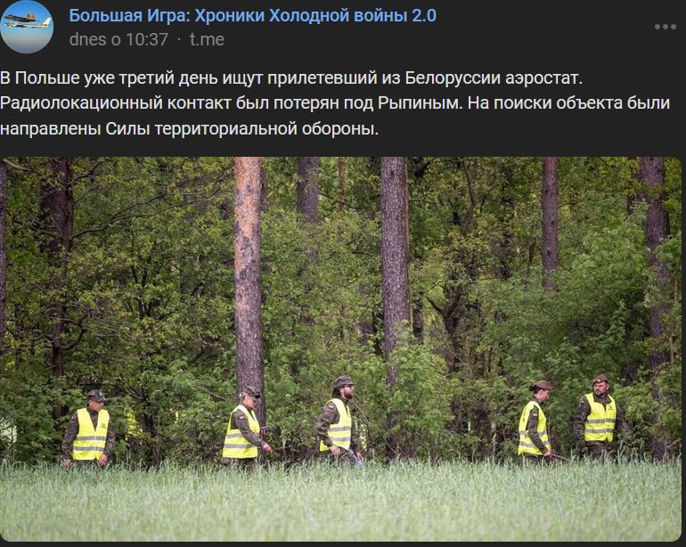 Poľsko už 3 dni pátra po balóne, ktorý priletel z Bieloruska. Radarový kontakt sa stratil neďaleko Rypína (cca 290km od BLR, resp 155km od RU Kaliningradu). Na pátranie po objekte boli vyslané sily teritoriálnej/územnej obrany.