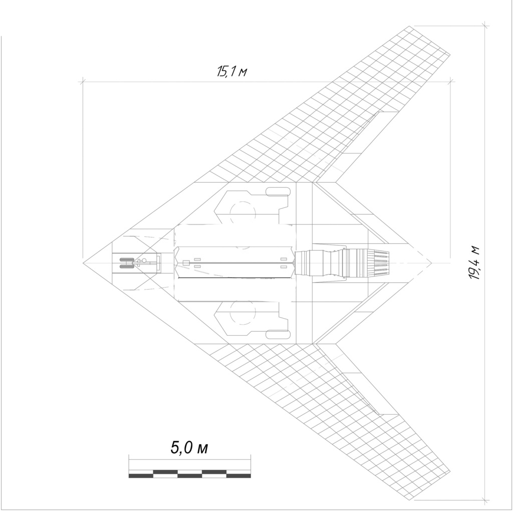 Upravená verze s jednou pumovnicí z Su-57 (široká 2,3m), akorát je zde o 20% širší = 2,8m..