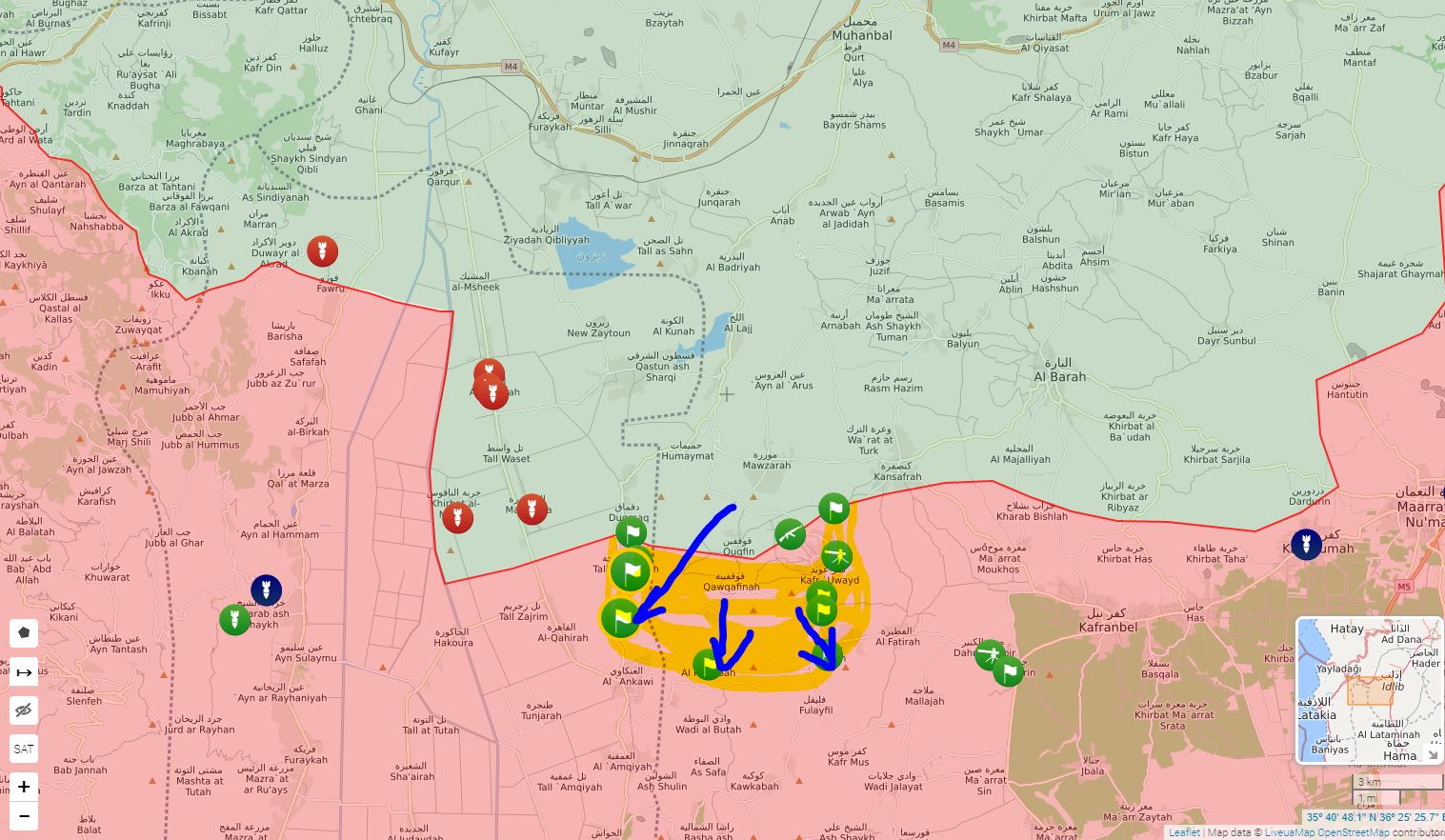 Sýrská armáda nemůže v souvislosti s tureckými leteckými údery postupovat a držet území. Teroristé TahrirAlSham s podporou Turecka vyřadili asadisty z Mashikem, Ziyarahem, Zaytounem, Qastounem, Vysokým Waselem, Mansourou, Duqmaqem, Qulaydinem, Zuqumem, Al-Qahirou, Al-Ankawiem, Al-Hallubahem, Quqfinem, Kafrem Muqarem, Kafrem Maqarem, Kafrem Muqdem -Fatirah, Dayr al-Kabir a Hazzarin.