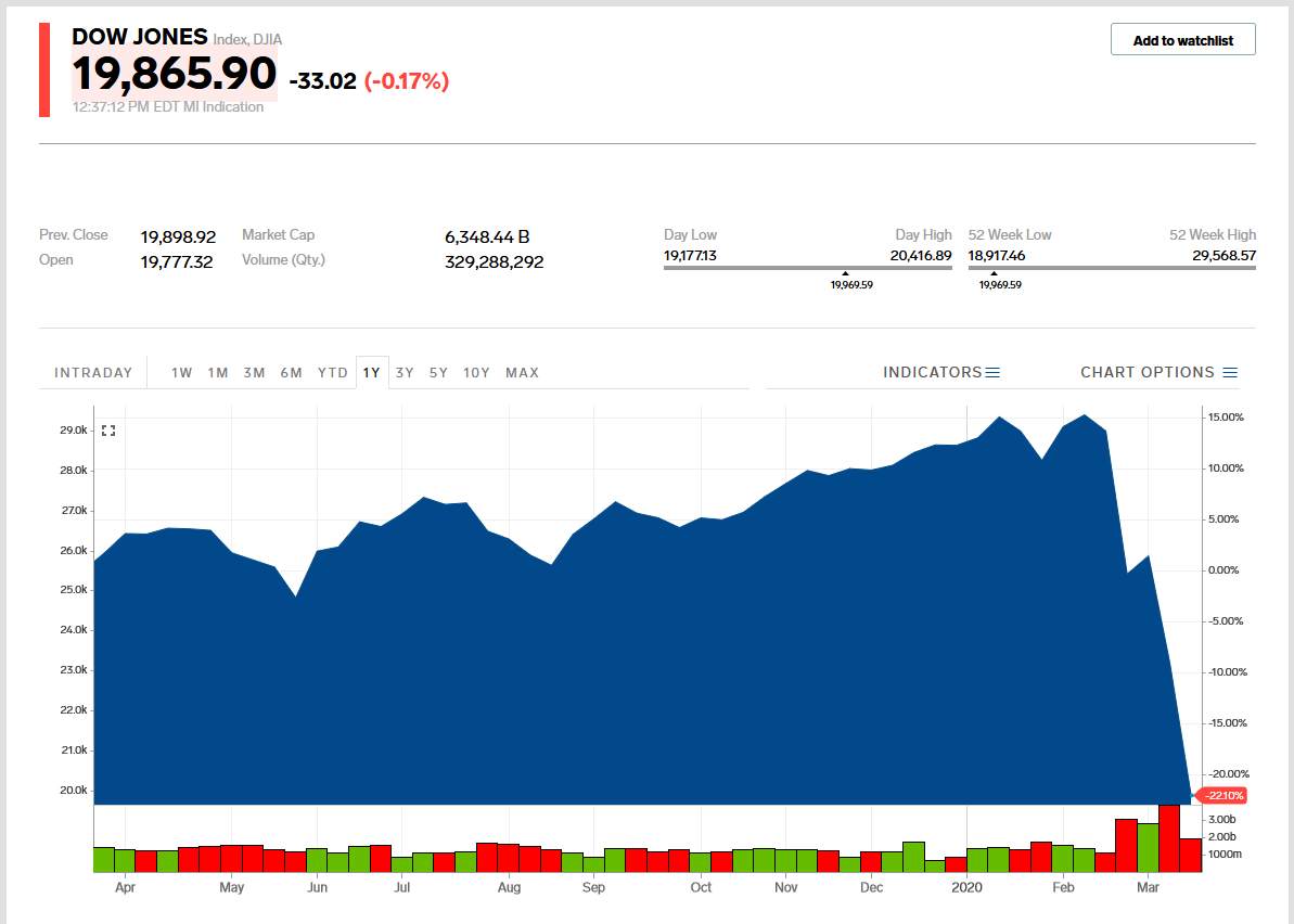 za 37 dní (od 12.2.2020) stratil DJ do včera (20.3.2020) toľko ako získal za 39 mesiacov a 18 dní od 2.12.2016...