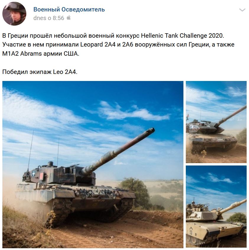 V Grécku sa konala malá vojenská súťaž "Hellenic Tank Challenge 2020". Zúčastnili sa ho Leopard 2A4 a 2A6 gréckych ozbrojených síl, ako aj Abrams M1A2 americkej armády.