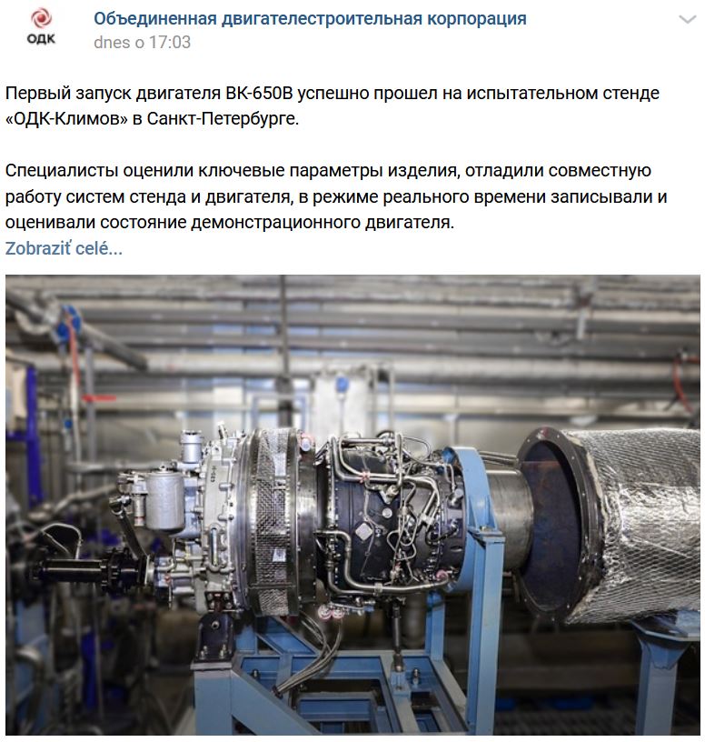 V Petrohrade vo fabrike "Klimov" (Климов) konzorcia ODK (ОДК) začali prvé testy nového malého motora VK-650V (ВК-650В) určeného pre malé vrtuľníky rodiny Ansat-U (Ансат-У) + Kamov Ka-226T (Ка-226Т) + VRT-500. Ide o 1. skupinu testov zo 4. a až potom pôjde do výroby. Motor VK-650V (650 ako 650 konských síl) má momentálne do 12% dielov vyrobených technológiou 3D tlače. Finálny certifikát sa plánuje v roku 2023.