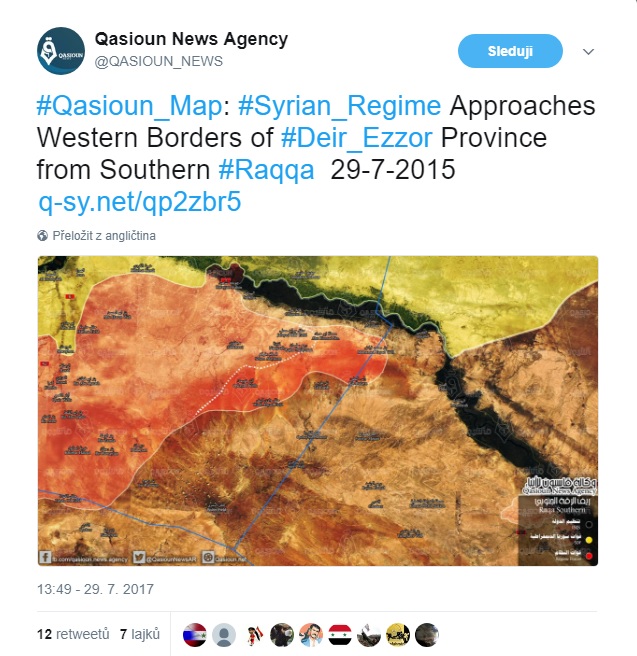 SAA+ překročila západní hranici provincie Deir Ez Zor. Z jiného zdroje.