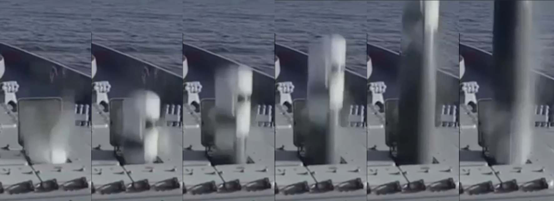Už jsem na to přišel, kde je sání vzduchu do scramjetu a jakou to má konstrukci na Zirkonu.. dejte mi půl hodiny, zatím jen přihodím fotku zas protaženou filtrem na doostření pohybového směrového rozmazání, všimněte si, že ten bílý materiál je i někde jinde než jen na "špici" (i když na té odvrácené straně je ho teda mrtě) a důvod proč tam je souvisí s tím, co tu píšu, že jde o nějaký ablativní materiál a aerodynamické zaslepení sacího ústrojí scramjet komory a lamače rázové vlny (a dalšího zařízení tam, kde je ho opravdu hodně) dokud je střela urychlovaná jen pomocí raketového motoru na TPH na minimální rychlost M4 (což se uvádí jako minimální rychlost pro zážeh scramjet motoru) a jelikož je to prudké zrychlení v řádu desítek G, tak aerodynamický ohřev není pozvolný, ale defakto raketový v této fázi letu a tomu brání tím bílým materiálem, který se pravděpodobně začne rychle odpařovat až v řídkých vrstvách atmosféry a velkých výškách (+10km minimálně) po dosažení letové rychlosti střely M4-5-6 za pomoci raketového motoru.