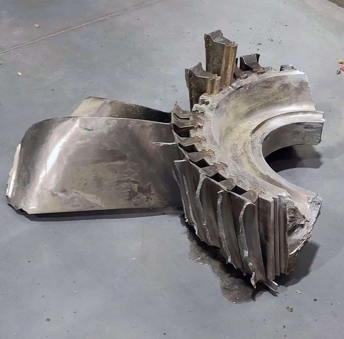 A rozsekaný je evidentne aj koreň krídla na pravej strane, takže z motoru odlietali obrovské kusy so strašnou energiou...