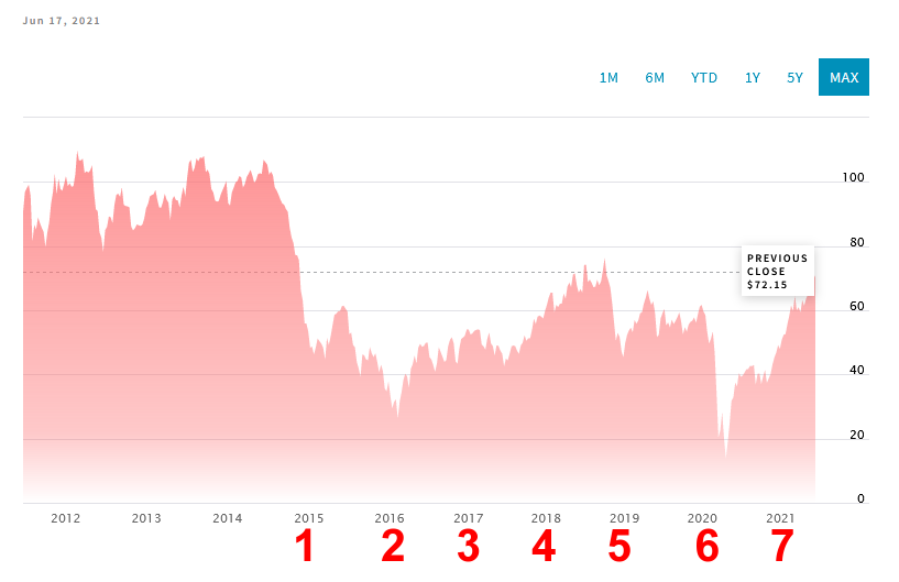 Ministerstvo přináší údaje od roku 1973. Podle těchto údajů USA pravidelně dovážely ropu v letech 1973 až 1979. Poté se dodávky snížily a nebyly natolik pravidelné.