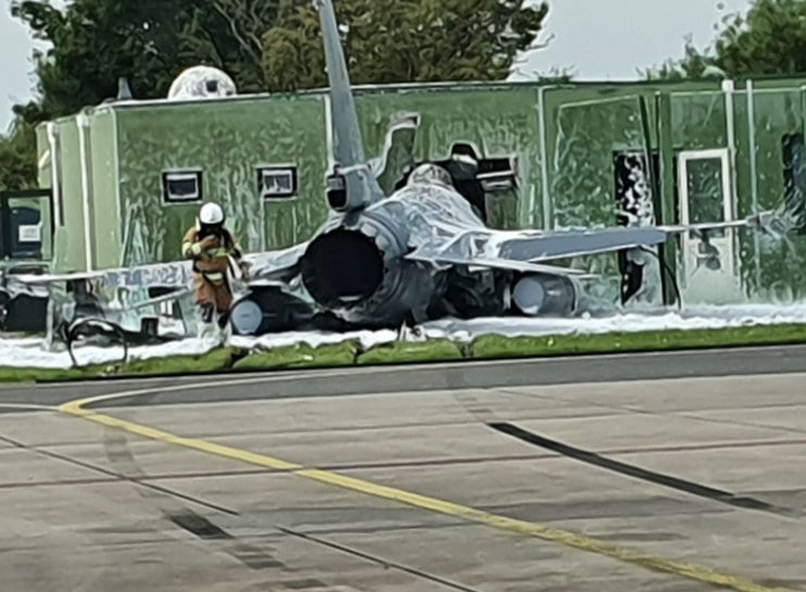 On asi neroloval ale sa mu po nahodení motora "zasekol" plyn a neubrzdili to ani brzdy(viď. brzdné stopy zablokovaných kolies) a v tom trávniku sa mu nohy asi zlomili?Dnes na leteckej základni Leeuwarden holandského letectva došlo k incidentu s jedným z bojovníkov belgického letectva F-16AM, ktorý sa po naštartovaní motora začal spontánne pohybovať na parkovisku, čo sa skončilo zrážkou s technickou budovou.