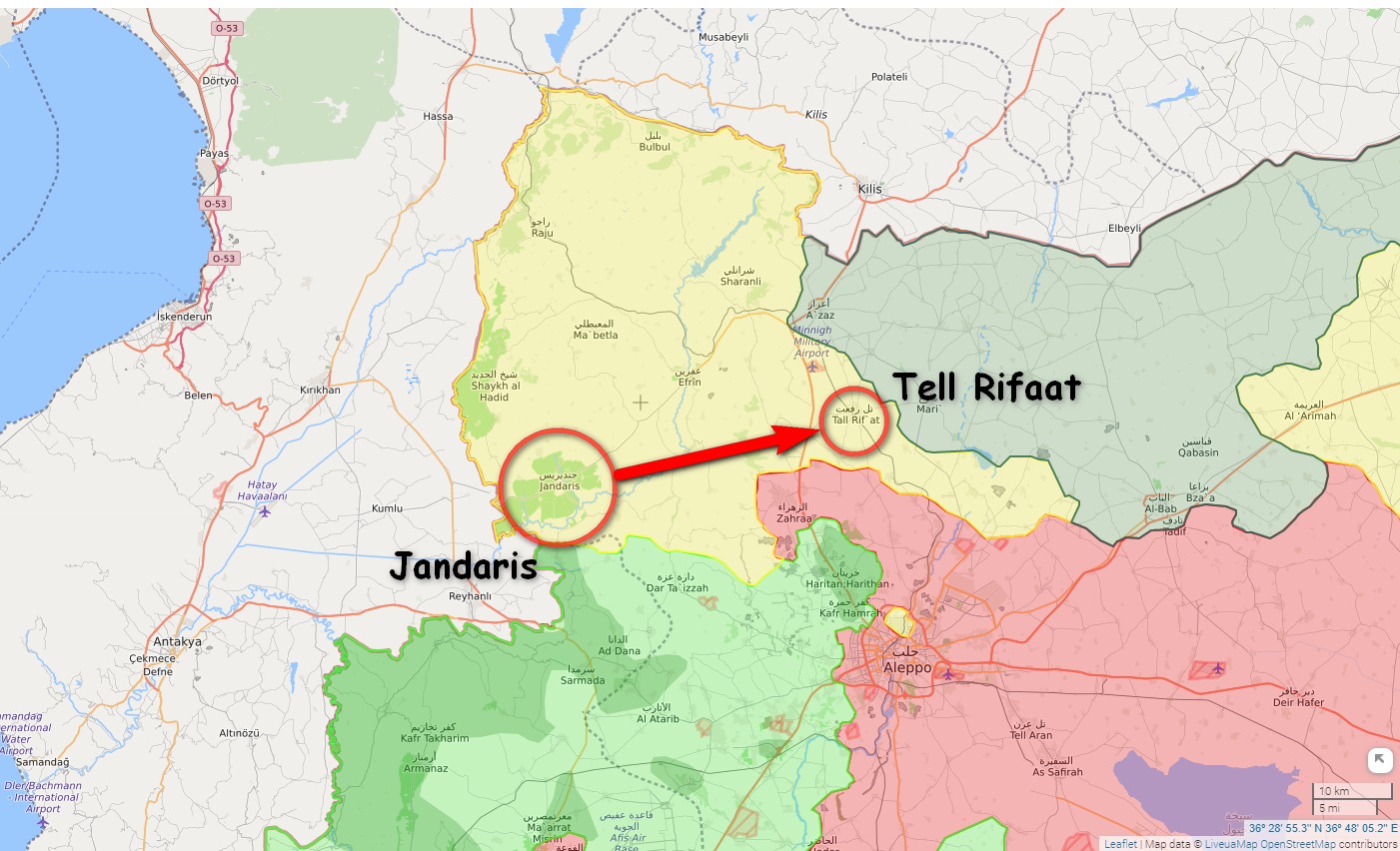 V Azaz bude od Kurdov vyčistená oblasť Tell Rifaat. Dôležitý je záver článku, kde sa spomína, že "Akýkoľvek pokus USA odovzdať Idlib [kurdským silám] PYD z rúk Tahrir al-Sham pod zámienkou oslobodenia sa stretne s odporom." Táto pasáž jednoznačne poukazuje na presvedčenie tureckej strany, že Tahrir al-Sham je proxy milicia Spojených štátov.