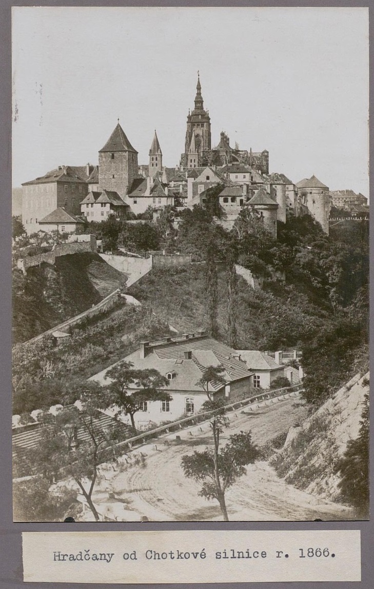 Aha, takže je to pohľad od prechodu z druhého nádvoria a stena za kaplnkou zakrýva terajší transcept. Ako vedel som, že v tej dobe bol Svatý Vít nedokončený, ale netušil som, že ho nebola ani polovica.
