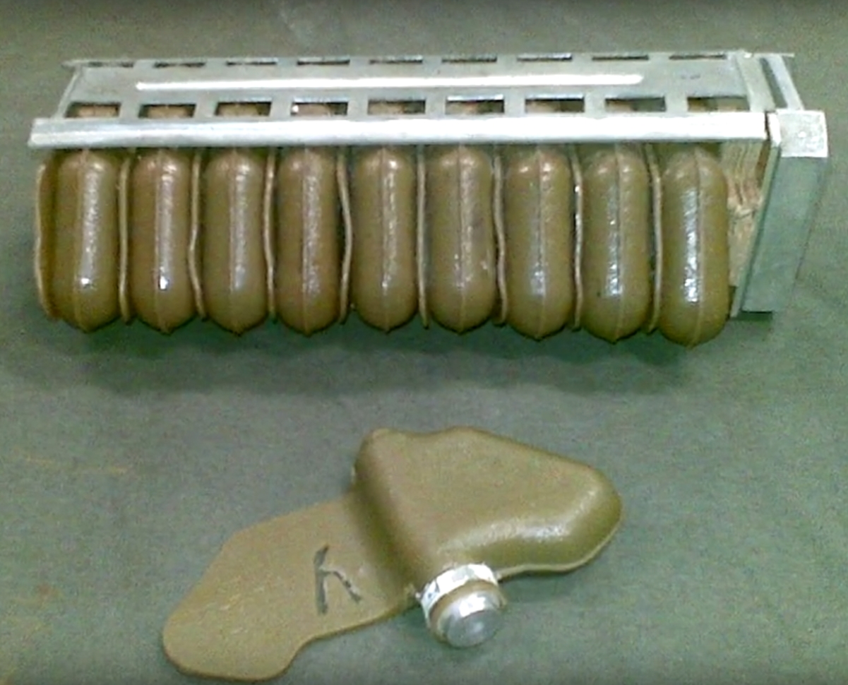 2. Kazeta KSF-1S. Obsahuje 64 mín PFM-1S. Vzdialenosť hádzania míny až 35 metrov.