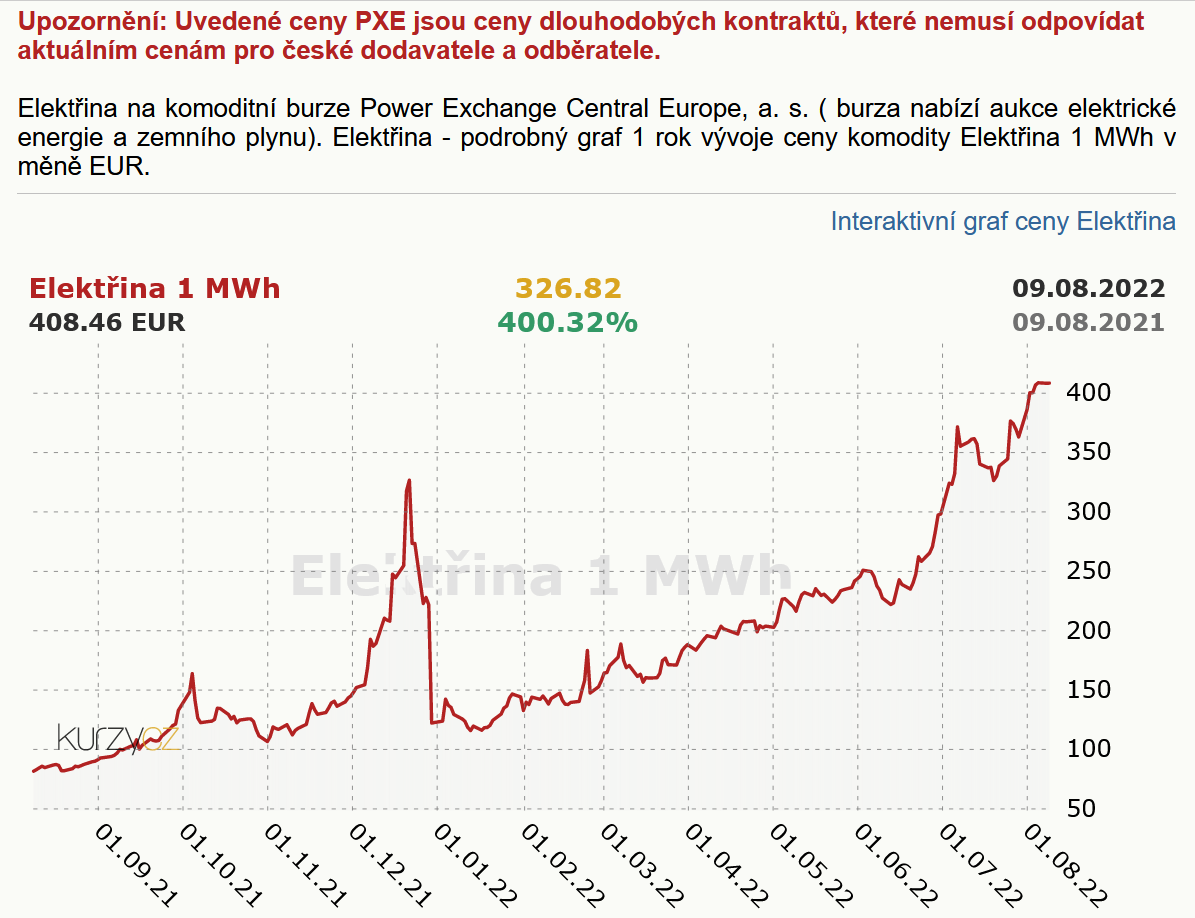 Cenový šok nekončí. Elektřina na burze prolomila historickou hranici 200 eur/MWh
