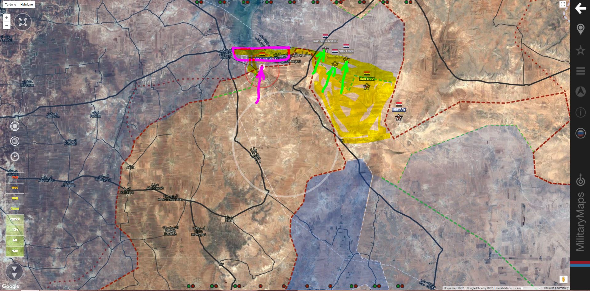 Provládní zdroje i mapy stále postup ISIS dementují. Co se děje ve skutečnosti je nejasné. Na druhou stranu zelená linka v jižní kapse má znamenat postup ISIS vůči HTS (a jejím spojencům).