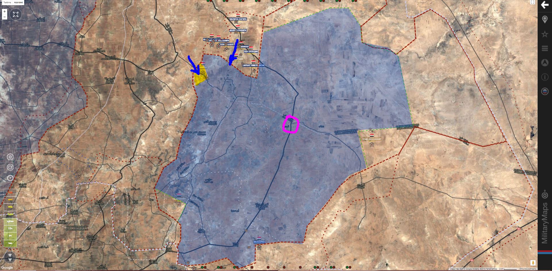 Saaraqib. Podľa vojenského zdroja v Hame, sýrska armáda prevzala v noci kontrolu nad Tal Sultanom a Al-Mushayrifahom po krátkej bitke s Hay'atom Tahrirom Al-Shamom a Turkestánskou islamskou stranou (TIP).