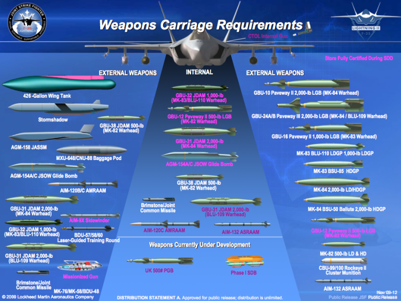 Někde tady byl dotaz na to co F-35 nese interně, má jít o 4 AMRAAMy nebo kombinace s nějakýma pumičkama, interní nesení AMRAAMů se má zvýšit na 6 ks.