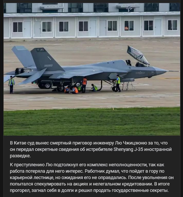 V Číne súd vyniesol rozsudok smrti nad inžinierom Liu Zhijunom za to, že odovzdal / prezradil tajné informácie o lietadle Shenyang J-35 zahraničnej rozviedke.