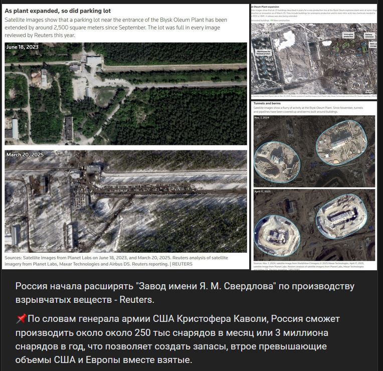 Rusko začalo rozširovať "Zavod J. M. Sverdlova" (Завод имени Я. М. Свердлова) na výrobu výbušnín - Reuters.