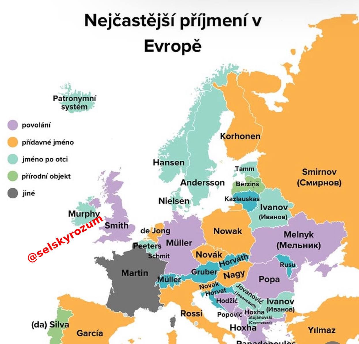 Nejčastější příjmení v Evropě jsou následující: