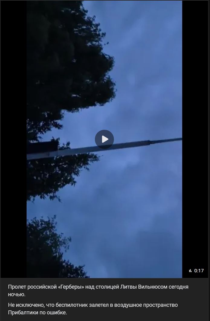 Video https://vk.com/video-123538639_456317889 dĺžka 17 sek.Prelet ruskej Gerbery (Герберы) nad hlavným mestom Litvy, Vilniusom, dnes v noci