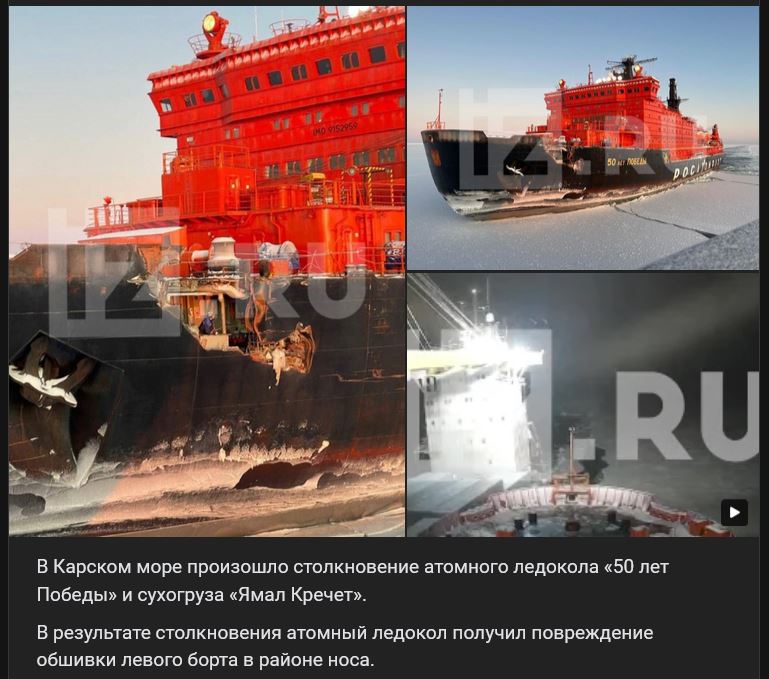 V Karskom mori sa zrazili A-ľadoborec "50 Let Pobedy" (50 лет Победы) a nákladná loď "Jamal Krečet" (Ямал Кречет). V dôsledku zrážky utrpel A-ľadoborec poškodenie ľavého bočného trupu v prednej časti.