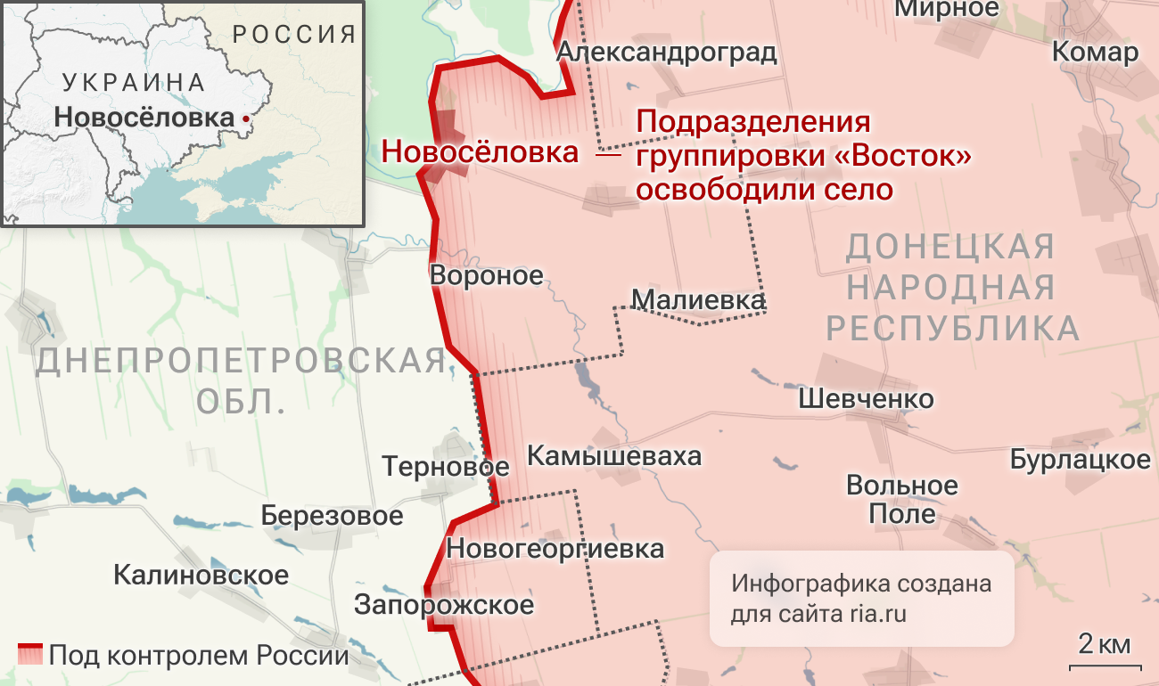 MOSKVA, 4. septembra — RIA Novosti. Bojovníci „Vostoku“ obsadili osadu Novoselovka v Dnepropetrovskej oblasti, informovalo ministerstvo obrany .