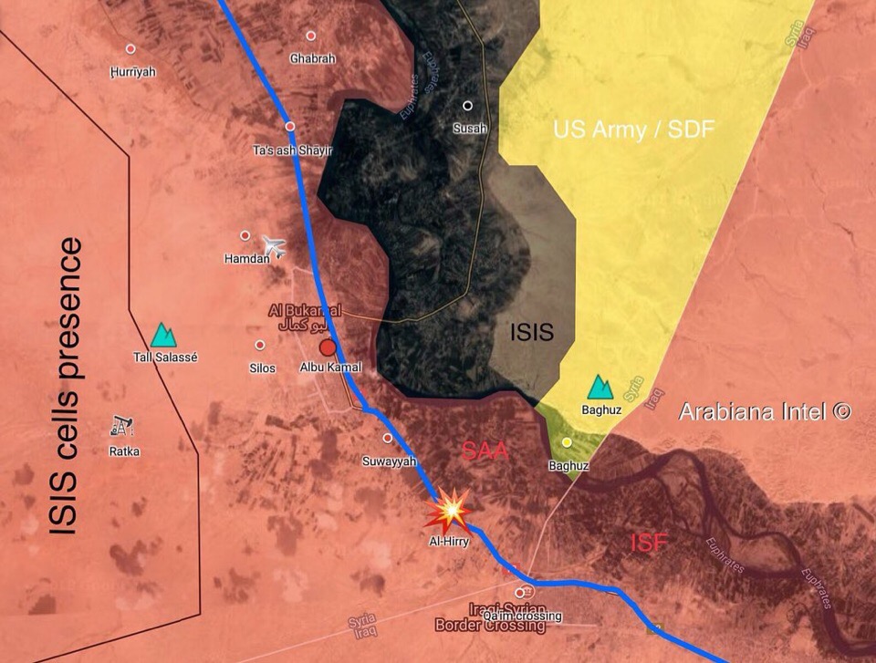 Jednotky IRGC vyťahujú z pod sutín telá po nečakanom nočnom leteckom útoku, ktorý zničil ich pozície blízko Abu Kemal (Imam Ali Brigade's obviňujú USA). Veľa mŕtvych je z irackých Hezbollah Brigades & Nujaba.