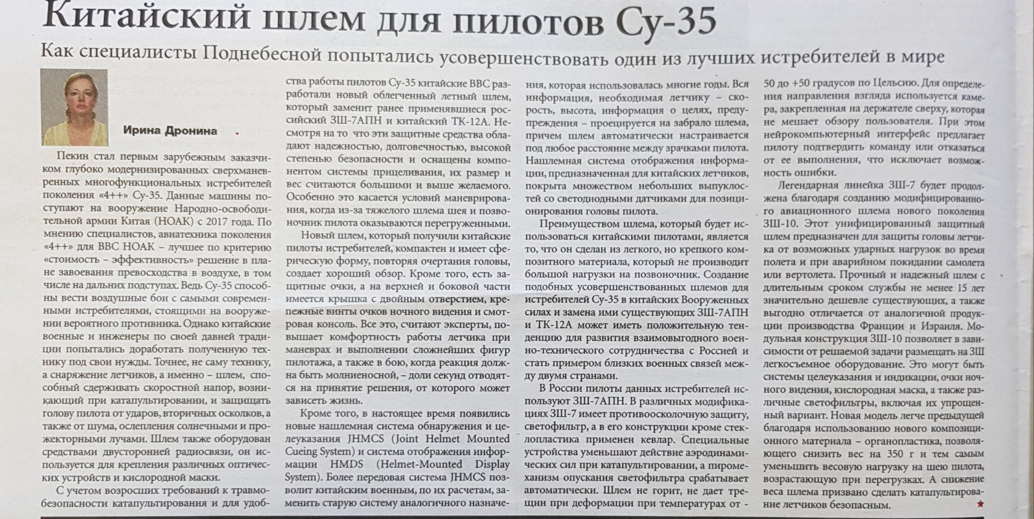 Čína si vyvinula a vyrobila vlastnú prilbu (šlem) pre pilotov lietajúcich na Su-35: