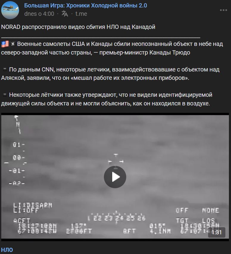 NORAD zverejnilo video zostrelenia NLO nad Kanadou