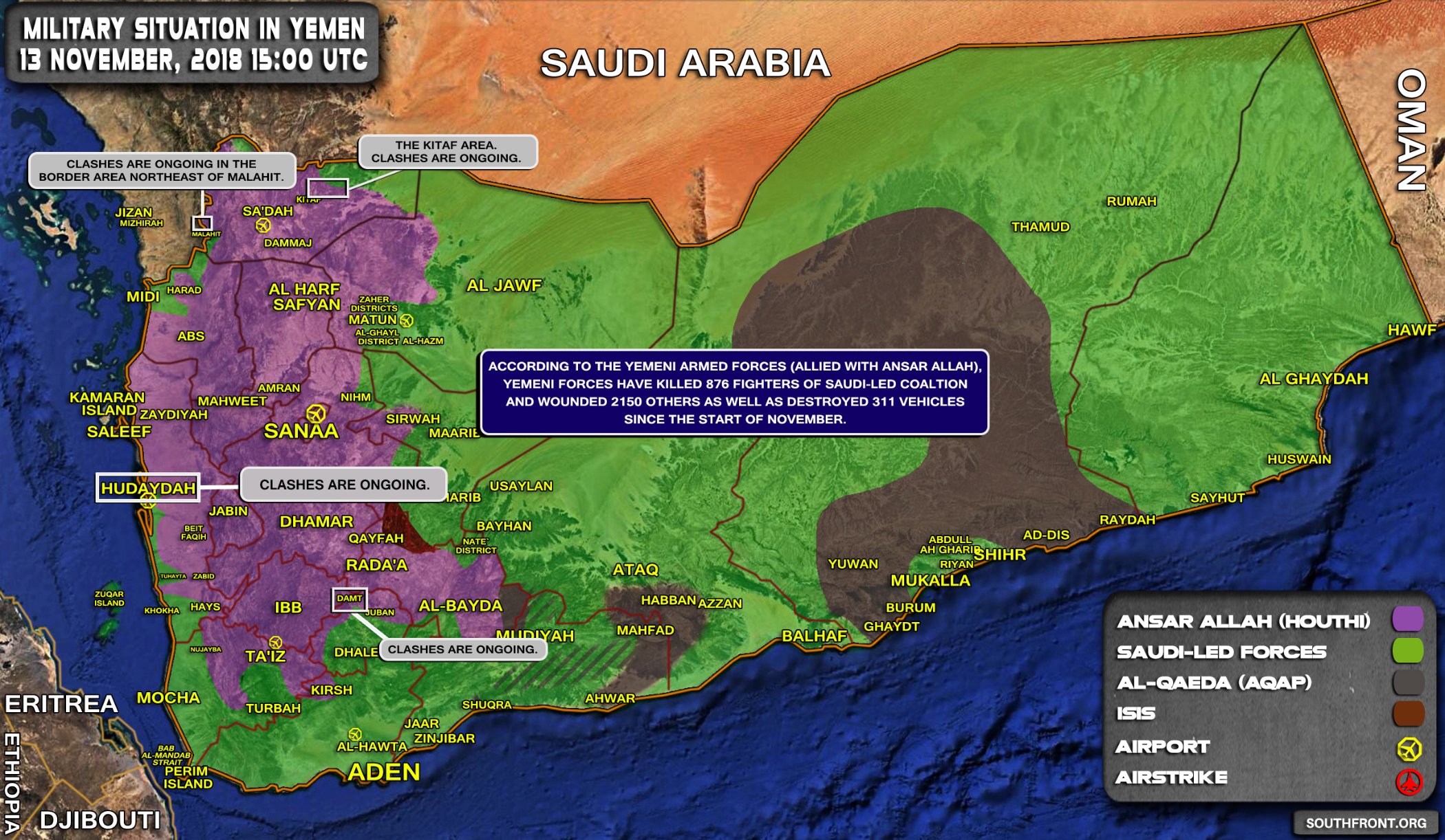 Vojenská situace v Jemenu dne 13. listopadu 2018