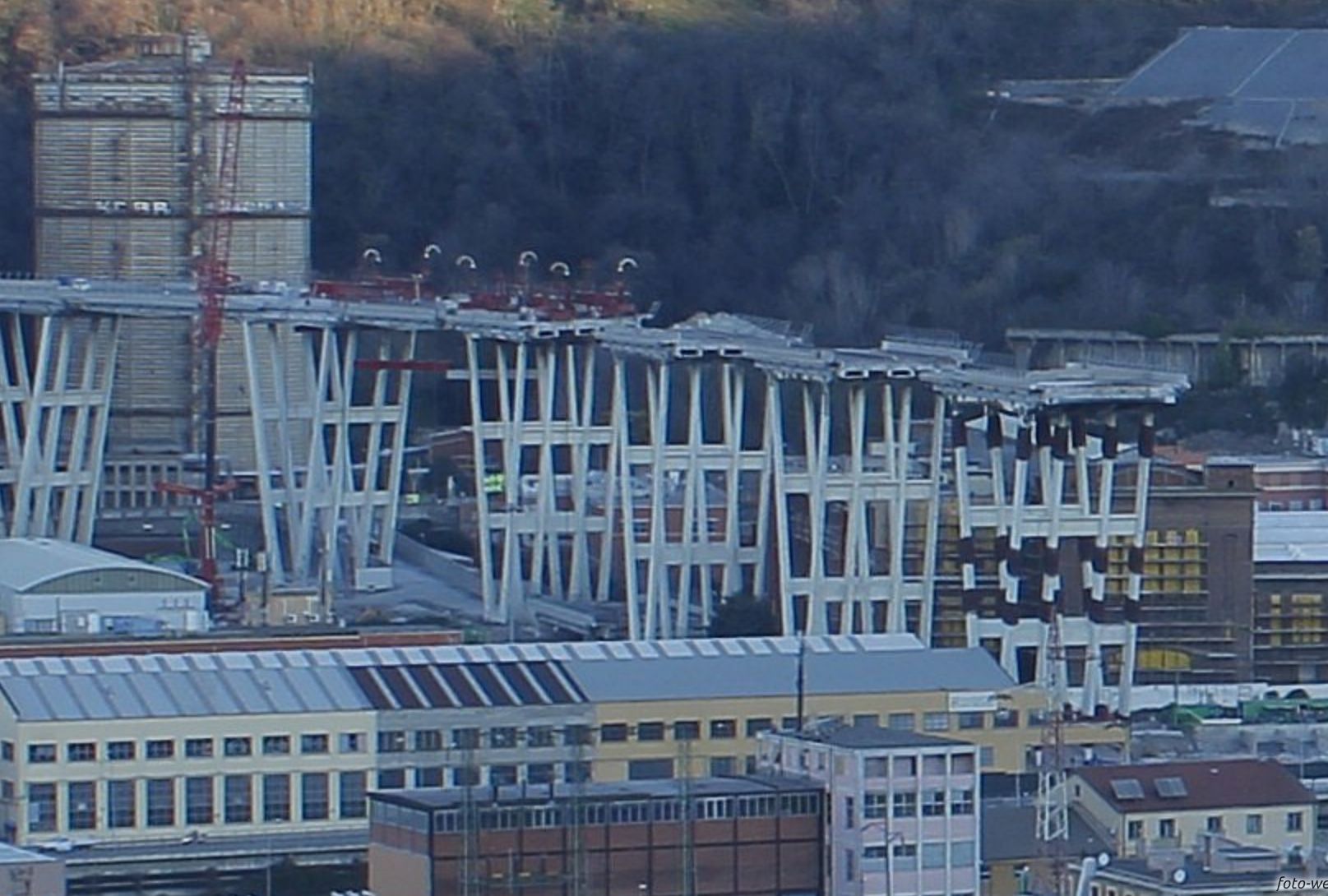 Na foto je dobře zřetelná příprava pro odstřel prvního poškozeného pilíře. Vše lze sledovat na této skvělé stránce webkamer