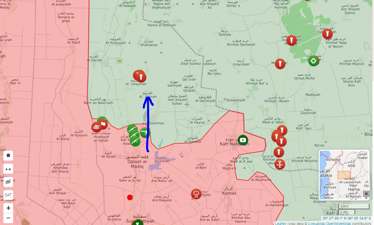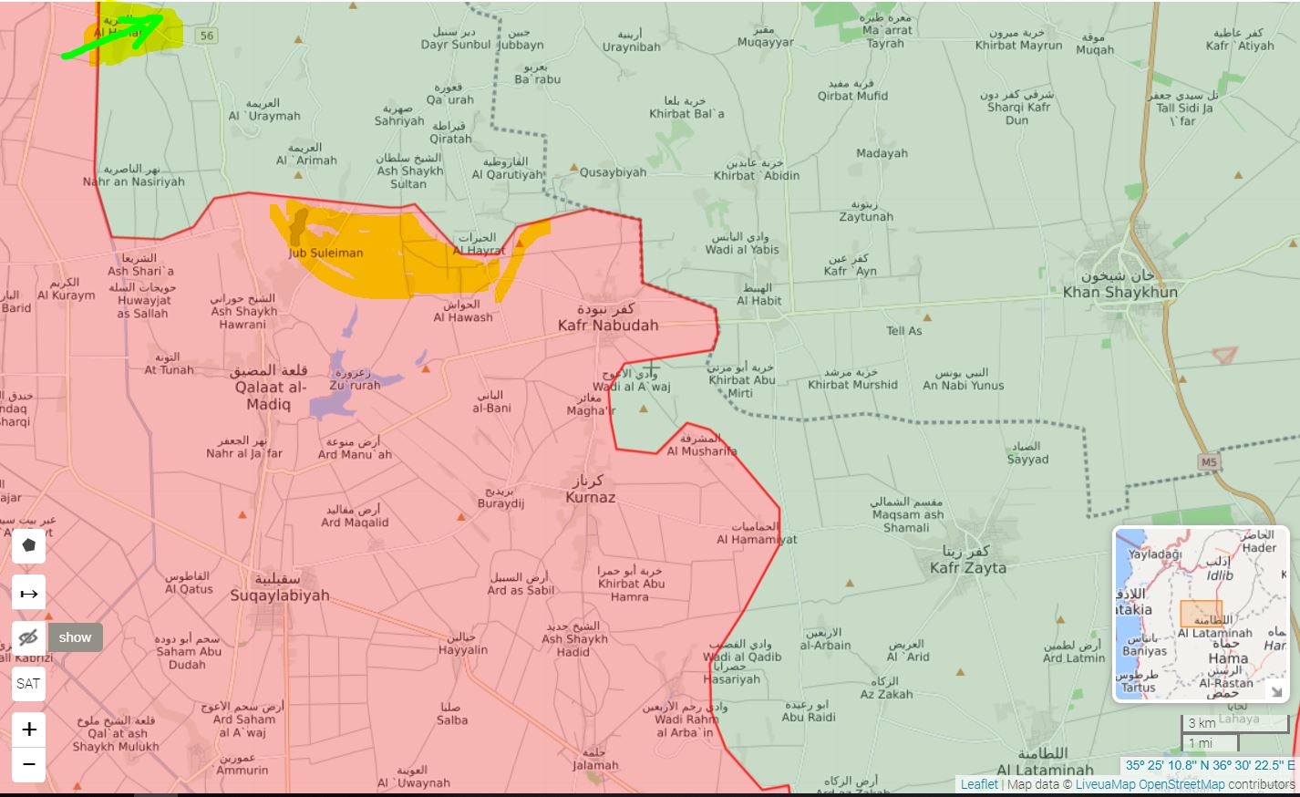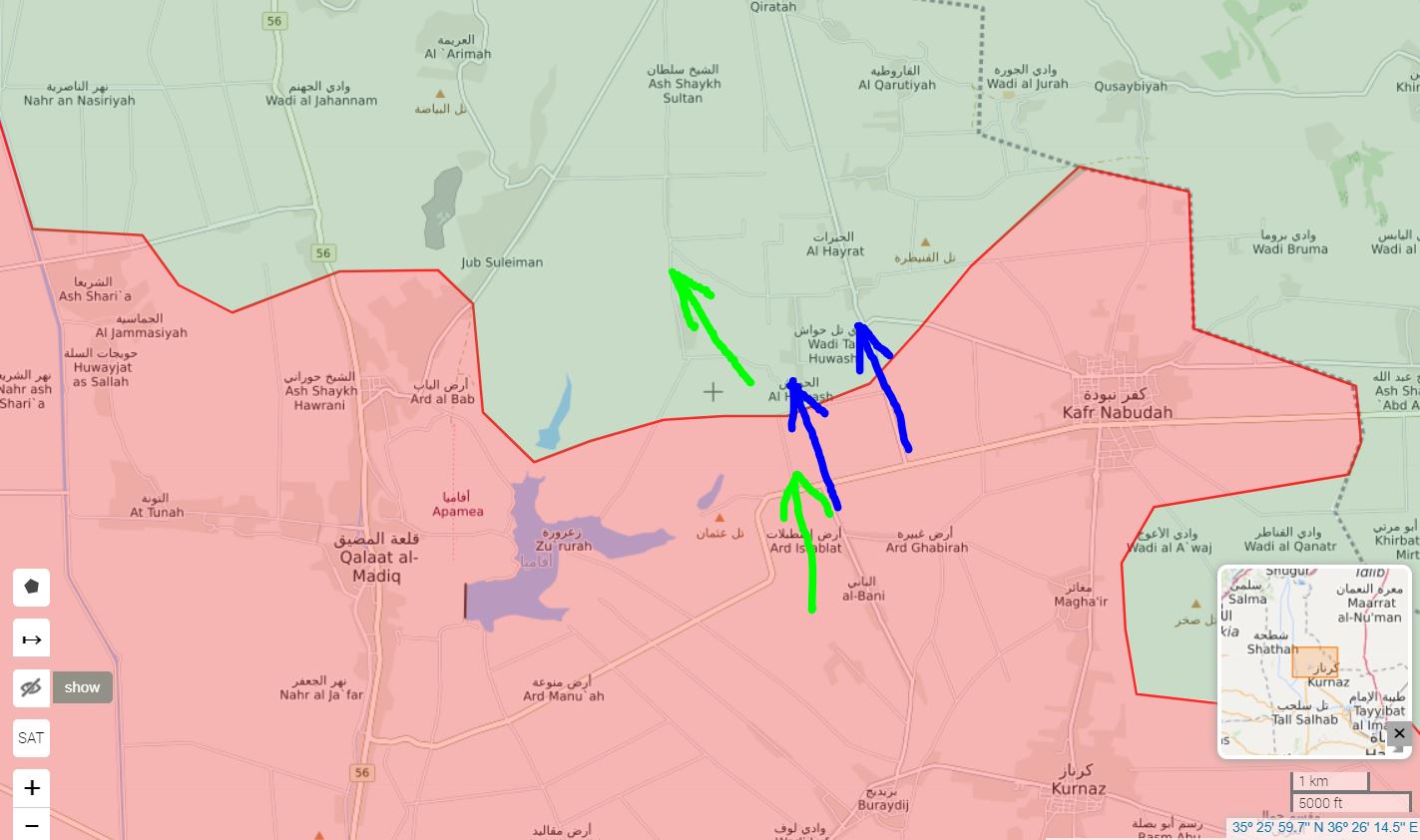 Podla tohoto tweetu by SAA mala ovladat Kafr Nabudah, Al-Karkaat, Qalaat al-Madiq, Bab al-Taqa and al-Shareeah