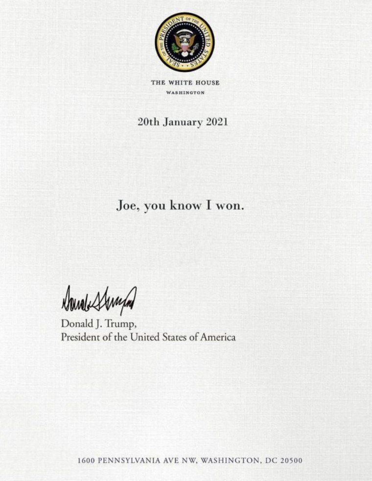 Dopis Trumpa novému presidentovi zanechaný v Oválné pracovně...