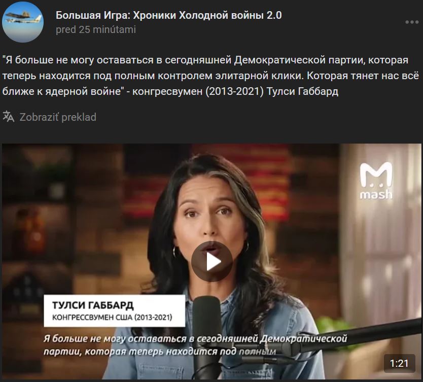 Zdroj https://www.teraz.sk/zahranicie/porota- ... lanok.html z 19.10.2022Ruského analytika a politológa Igora Dančenka oslobodila v utorok 18.10.202 porota v USA vo všetkých bodoch v súvislosti s obvineniami, že klamal americkému Federálnemu úradu pre vyšetrovanie (FBI) v súvislosti so spisom kompromitujúcim bývalého amerického prezidenta Donalda Trumpa. Dančenkova kauza je súčasťou vyšetrovania a tretím, zrejme posledným prípadom vyšetrovaným špeciálnym prokurátorom Johnom Durhamom, ktorý sa týka možného prepojenia medzi Trumpovým volebným štábom s Ruskom počas kampane v roku 2016. Prvé 2 prípady sa skončili oslobodením spod obžaloby a uznaním viny s podmienečným trestom. Samotný Trump tieto obvinenia dlhodobo odmieta a vidí v nich pokus o podkopanie dôveryhodnosti svojho vtedajšieho volebného víťazstva. Vyšetrovanie označoval tiež ako politicky motivovaný "hon na čarodejnice".