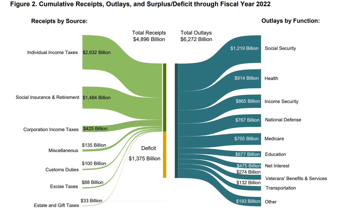 Pro fiskální rok 2022 se peníze z vrtulníku na přímé cílené dotace podle příjmů snížily na polovinu z 1,65 bilionu dolarů na 0,87 bilionu dolarů, dotované půjčky klesly z 307 miliard dolarů na vratku 20 miliard dolarů a celkové výdaje se snížily z 6,82 bilionu dolarů na 6,27 bilionu dolarů.
