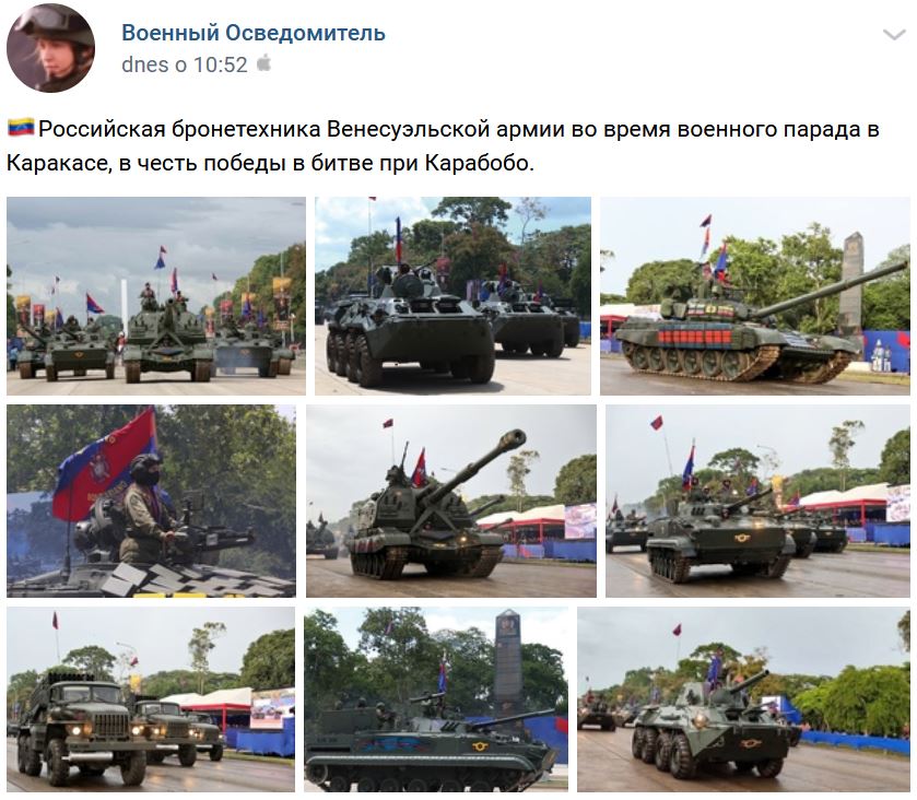 Vojenská prehliadka vo Venezuele = Ruské obrnené vozidlá venezuelskej armády počas vojenskej prehliadky v Caracase na počesť víťazstva v bitke o Carabobo (24.06.1821 - bitka o nezávislosť so Španielmi).
