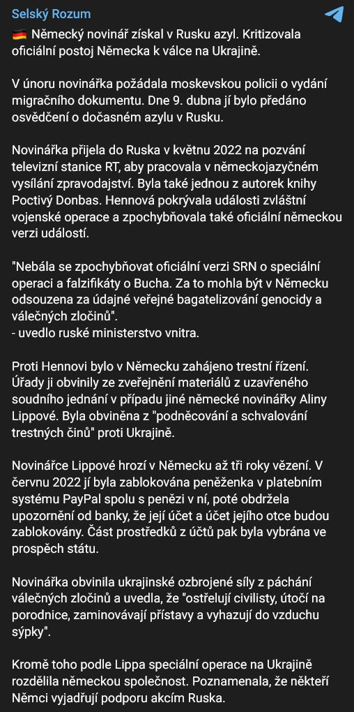 Zdroj https://t.me/selskyrozum/83995 z 09.04.2024